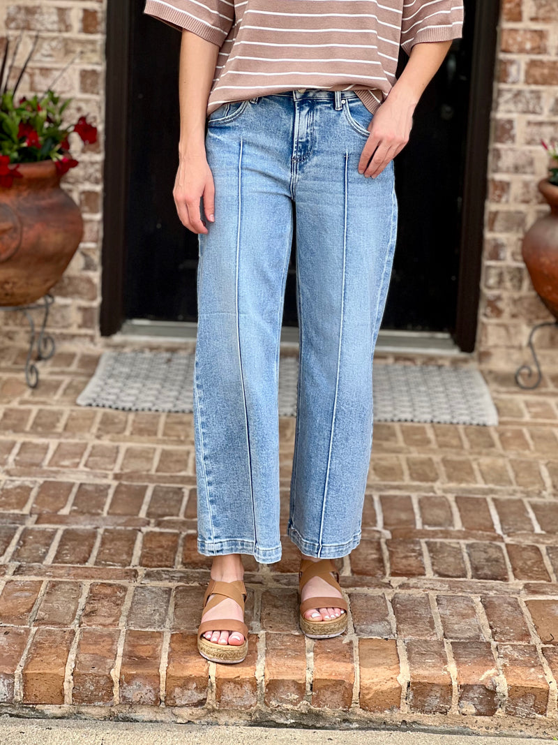 Risen | Mid Rise Crop Pintuck Jeans