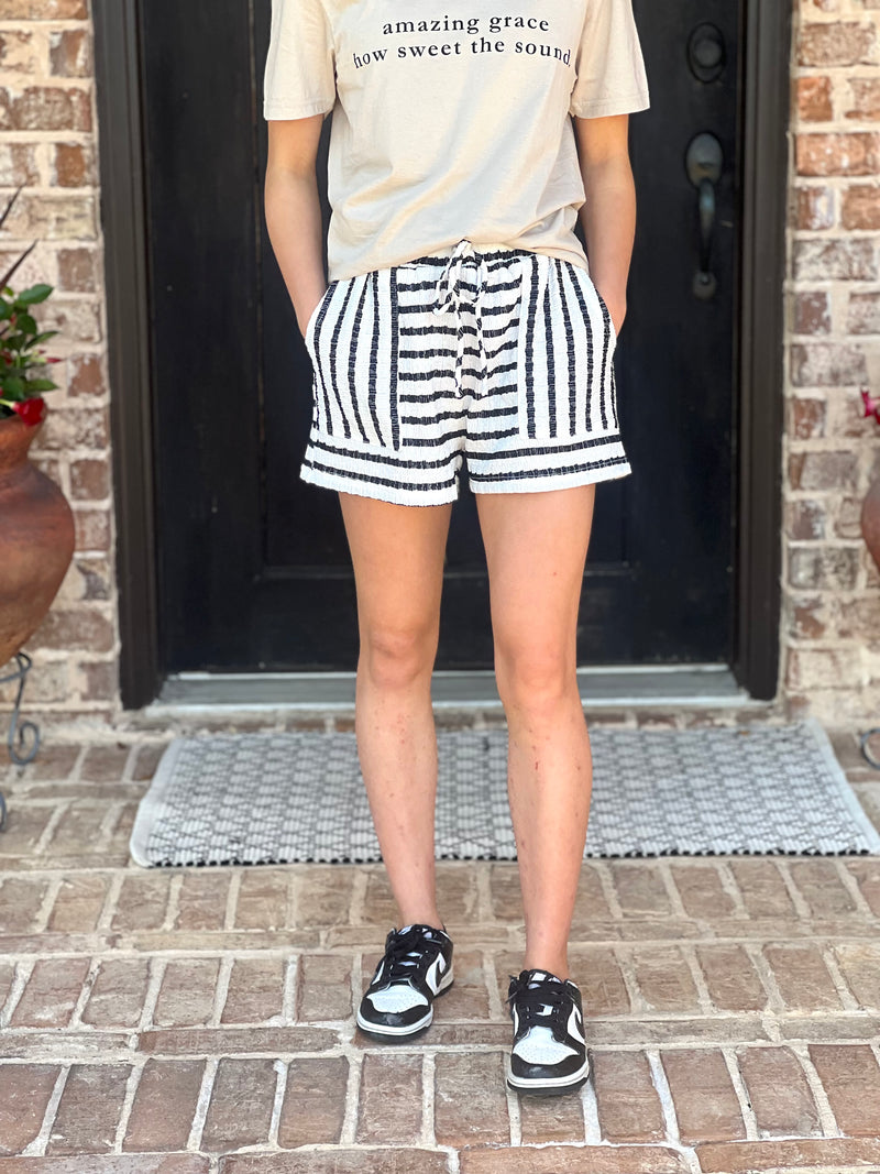 Black Textured Stripe Knit Shorts
