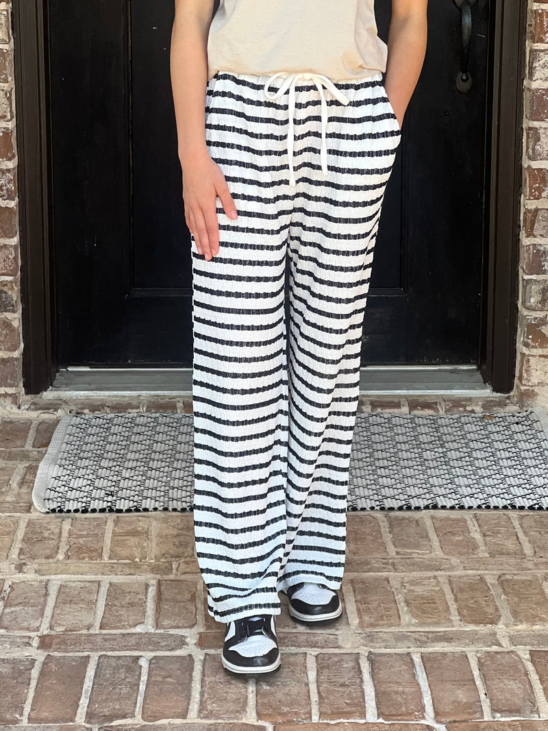 Black Textured Stripe Knit Lounge Pants