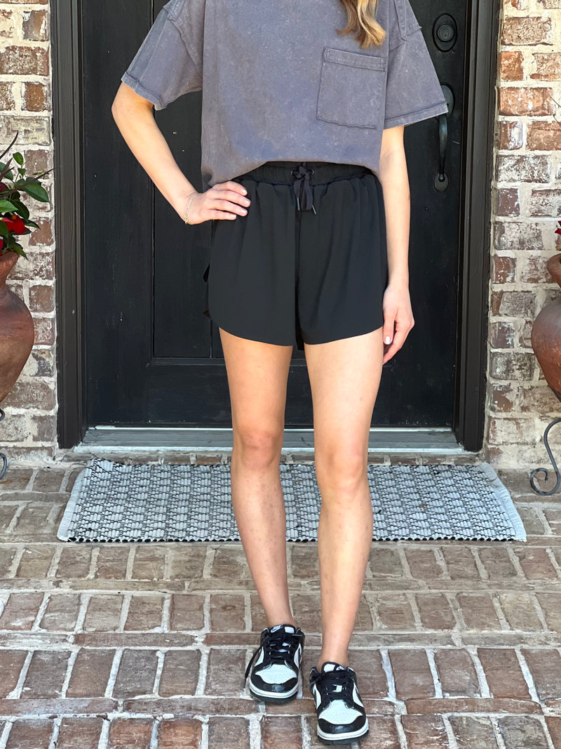Black Side Overlap Activewear Shorts w/ Shorts Lining