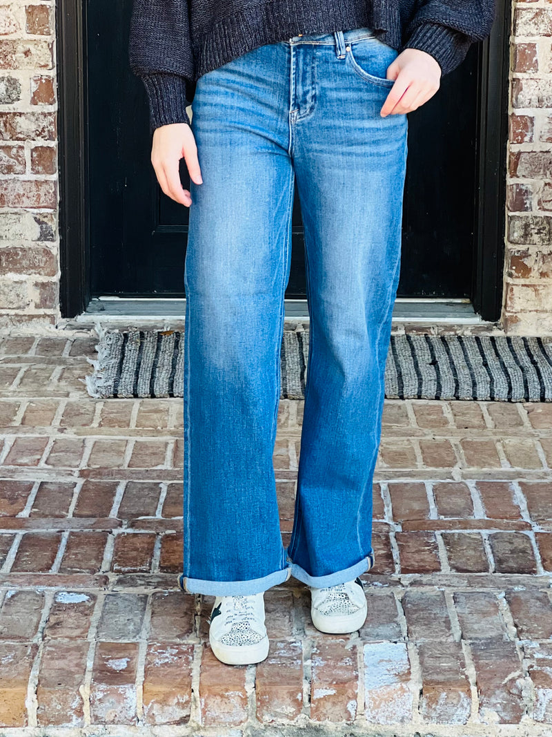 Risen | High Rise Relaxed Fit Straight Ankle Cuff Pants