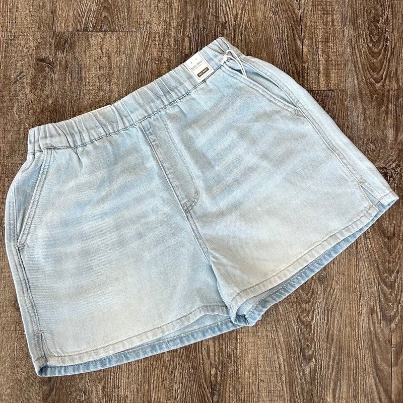 Risen | Light Wash Frayed Hem Drawstring Shorts