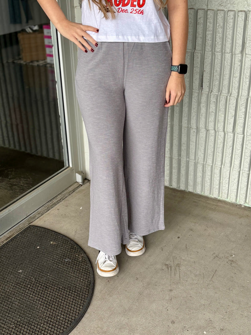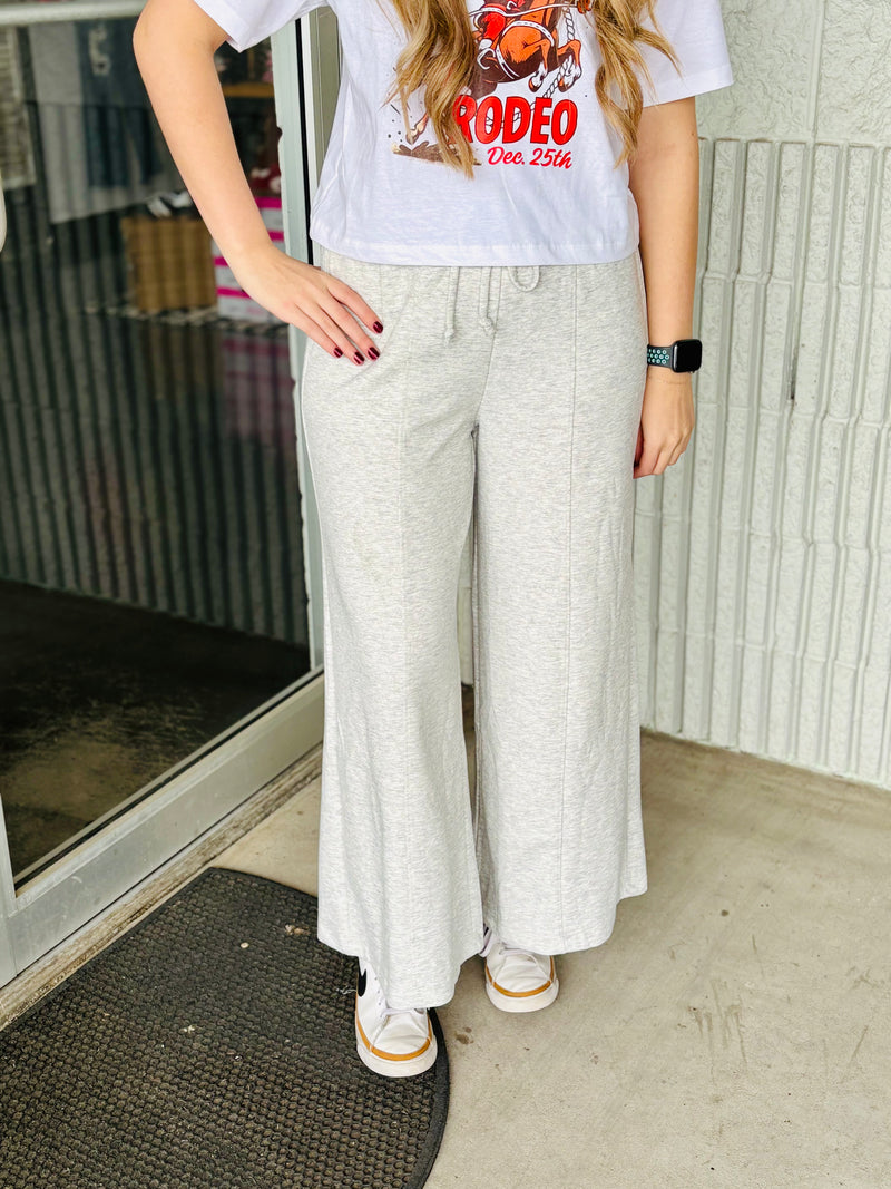 Heather Grey Scuba Drawstring Wide Leg Pants **Pink Friday/Black Friday Deal**