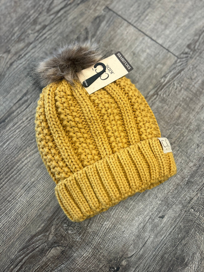 Youth Mustard Pom Beanie