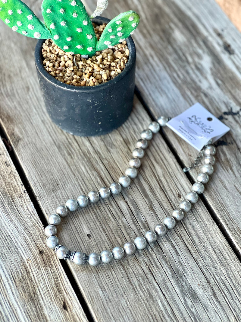 Brushed Silver Beaded Shortie Necklace