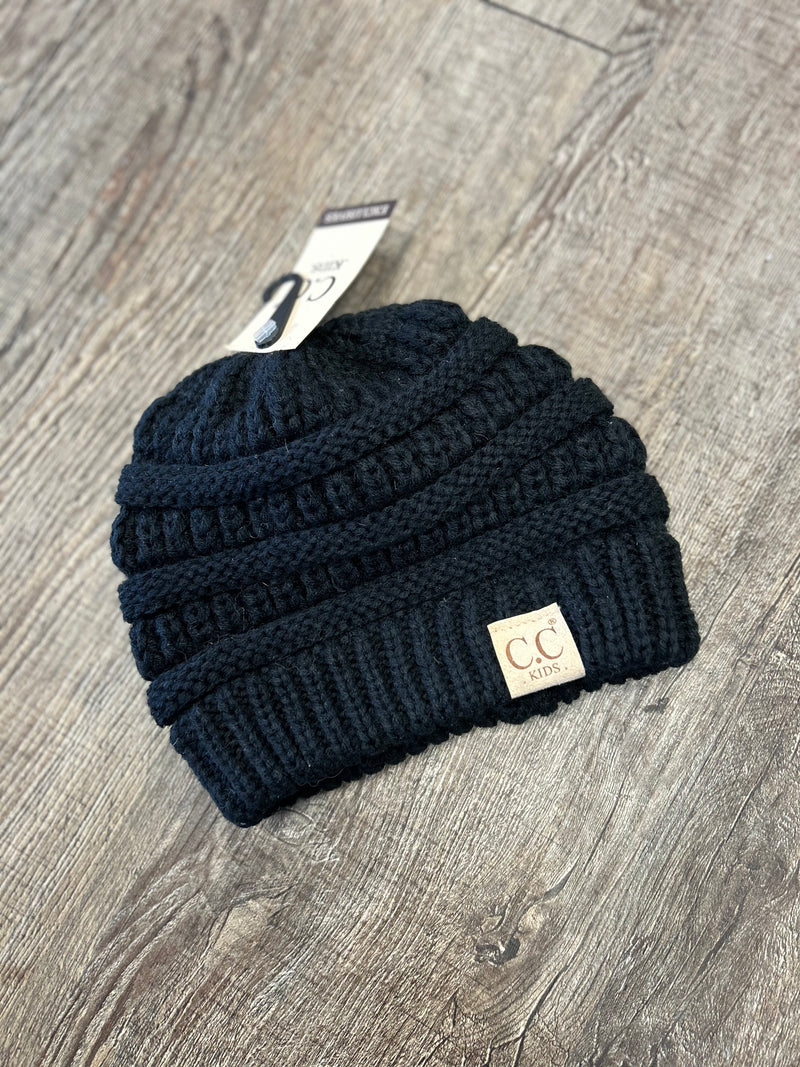 Youth Black Messy Bun Beanie