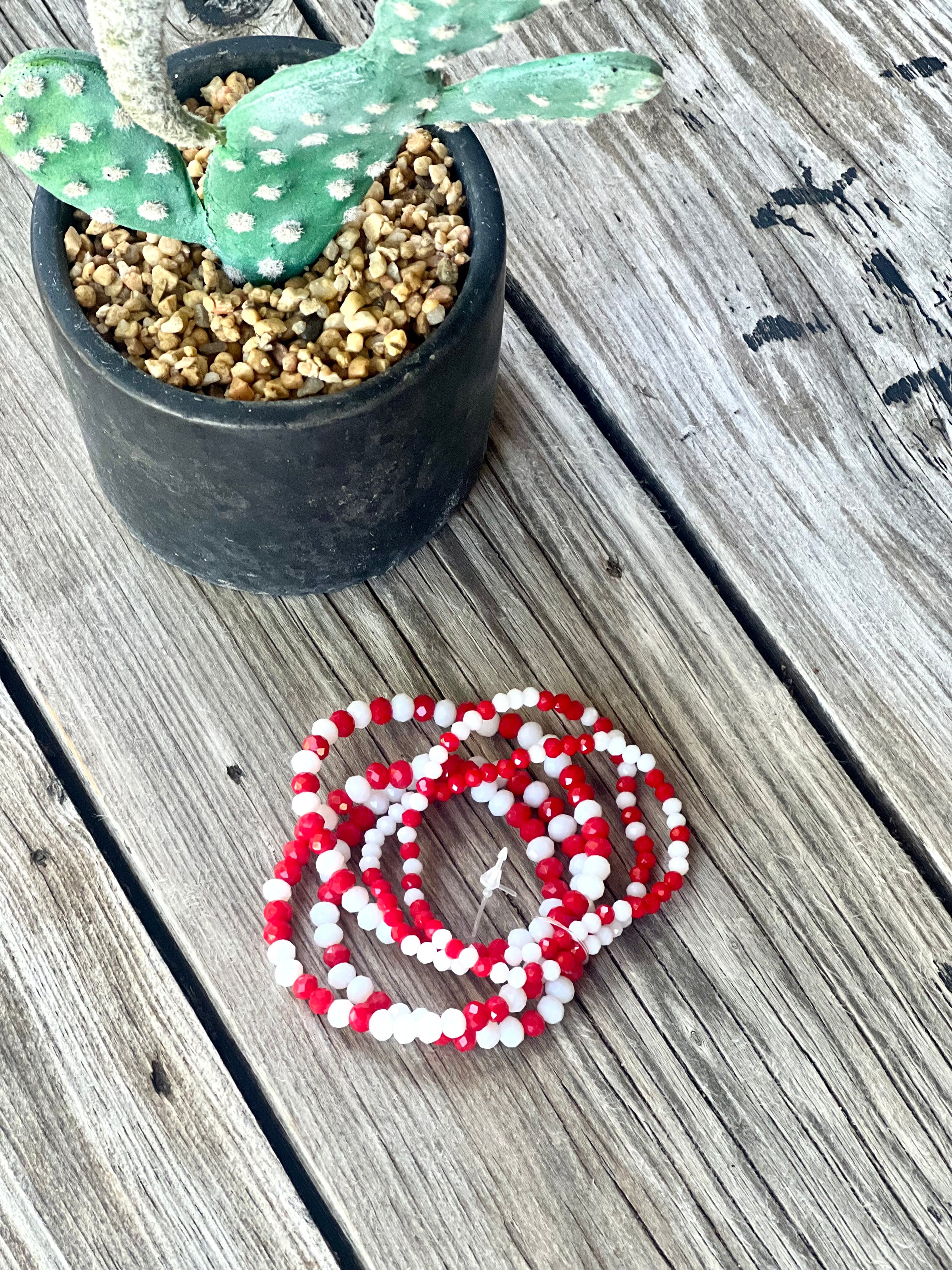 Add a pop of playful color to your wrist with these Red & White Mixed Bead Bracelets. With a quirky mix of red and white beads, these bracelets are the perfect accessory to show off your fun and unique style.