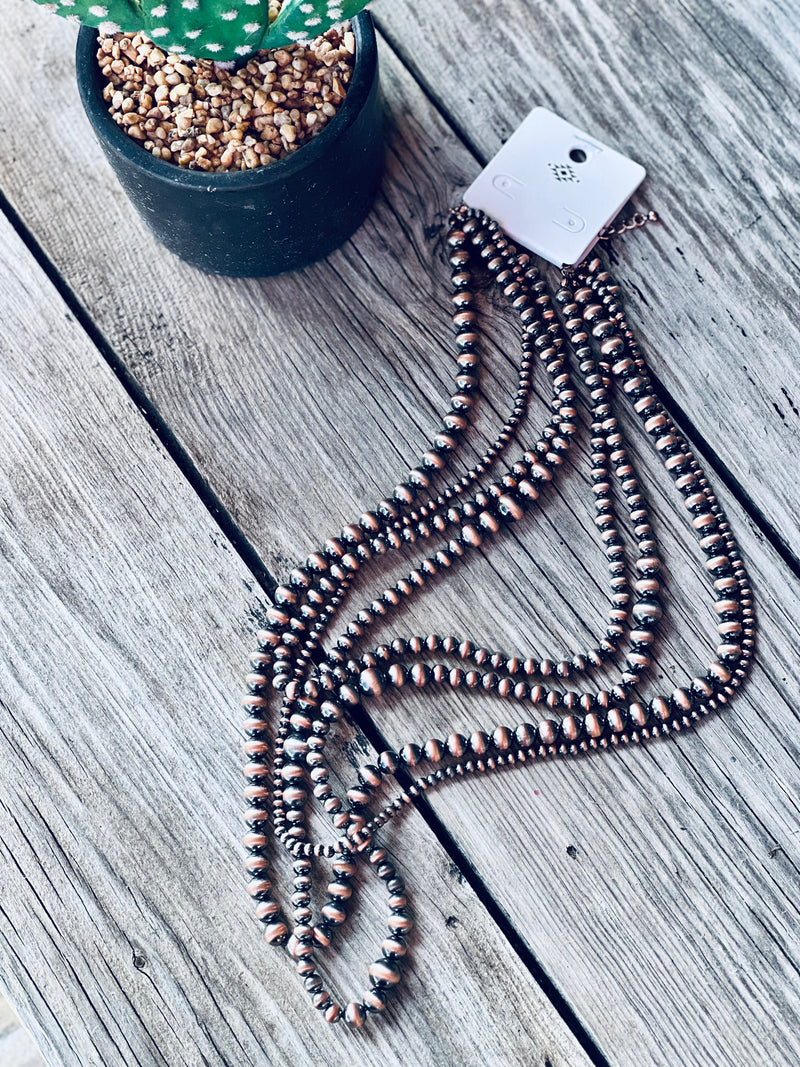Multi Strand Wood Bead Coin Necklace Grey & Gold