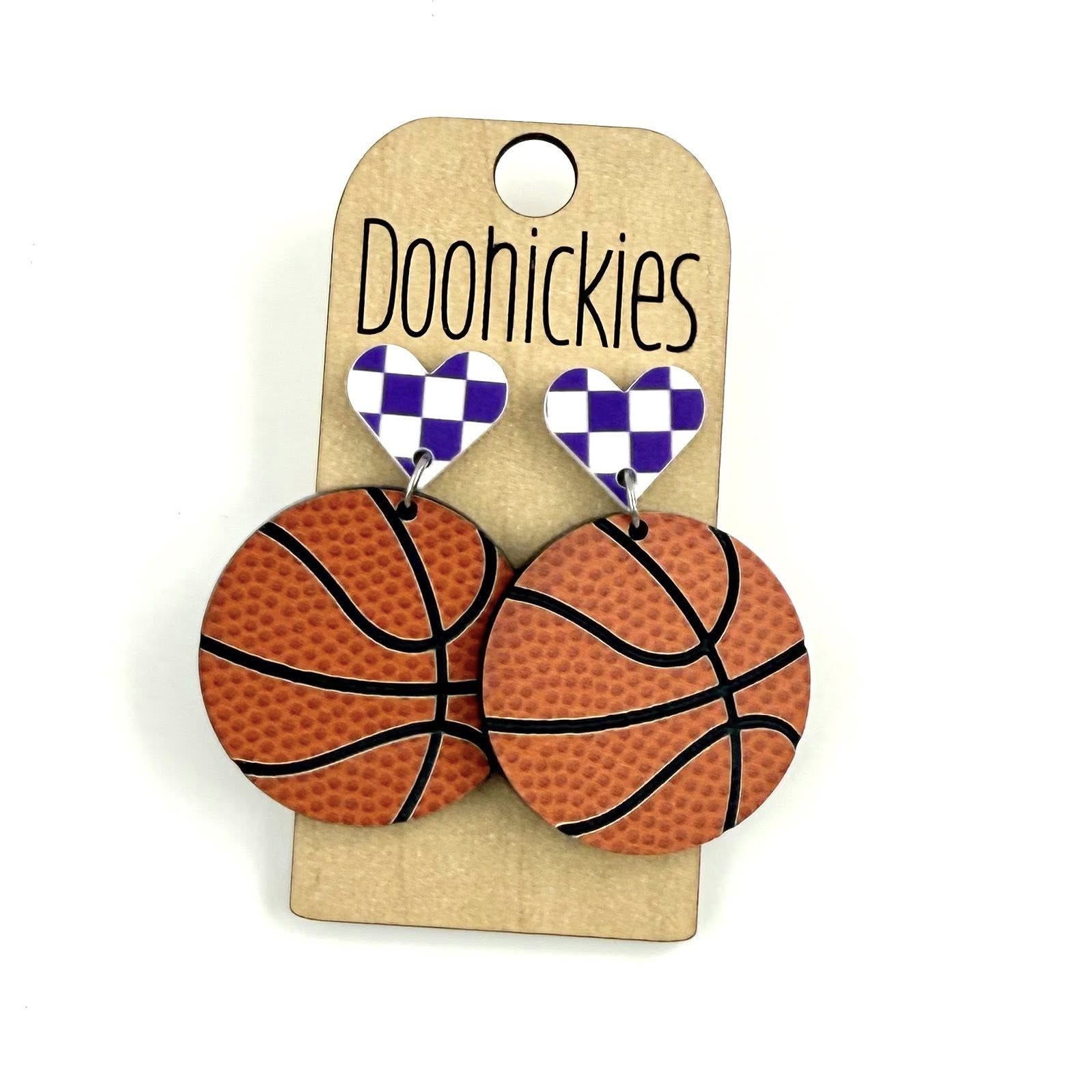 Checkered I Heart Basketball Dangles Sports Earrings