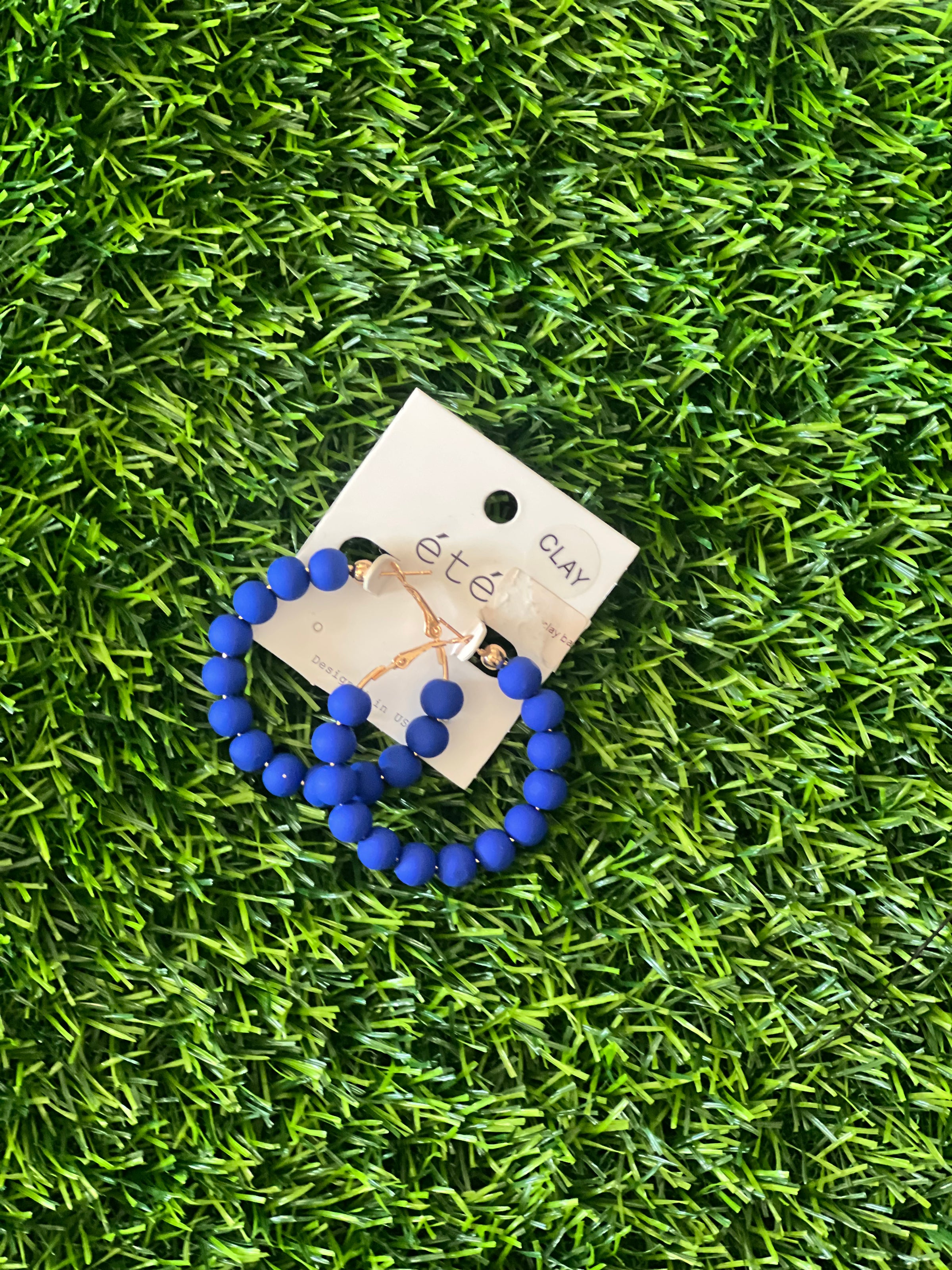 Put a spin on traditional hoop earrings with our Royal Blue Matte Clay Ball Hoops! These vibrant blue hoops are made with a unique matte clay material, adding a touch of texture to your game day look. Perfect for showing off your playful and fun side at any sporting event.