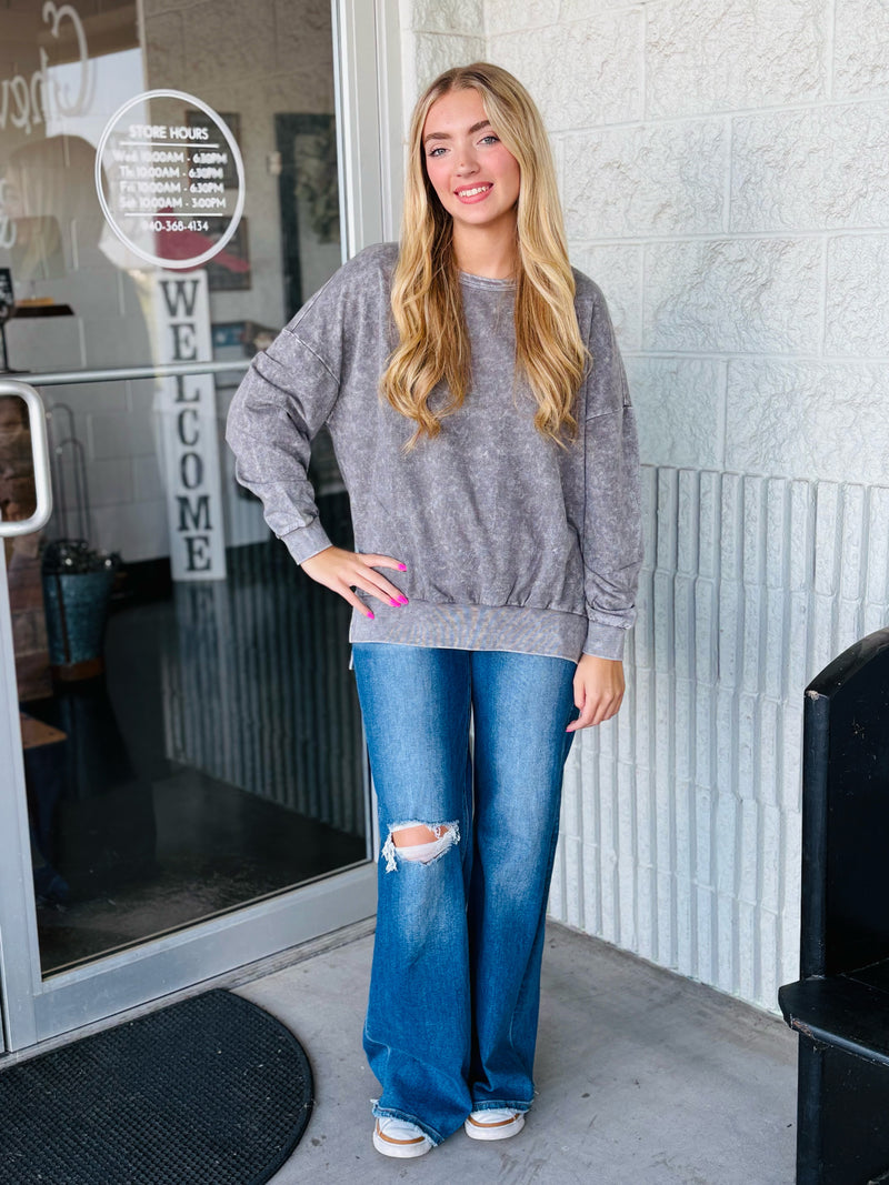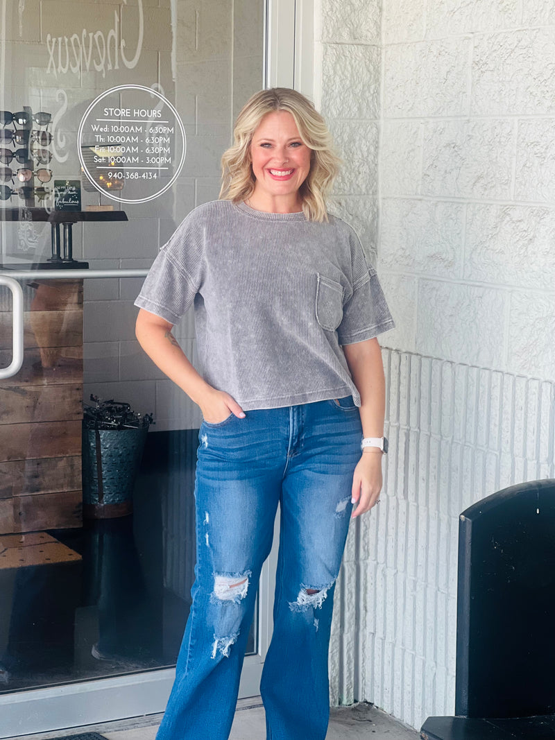 Charcoal Washed Rib Short Sleeve Tee w/Pocket
