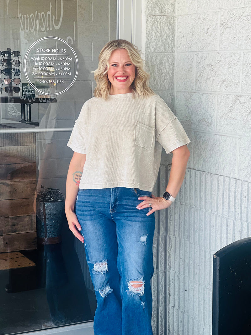 Khaki Washed Rib Short Sleeve Tee w/Pocket