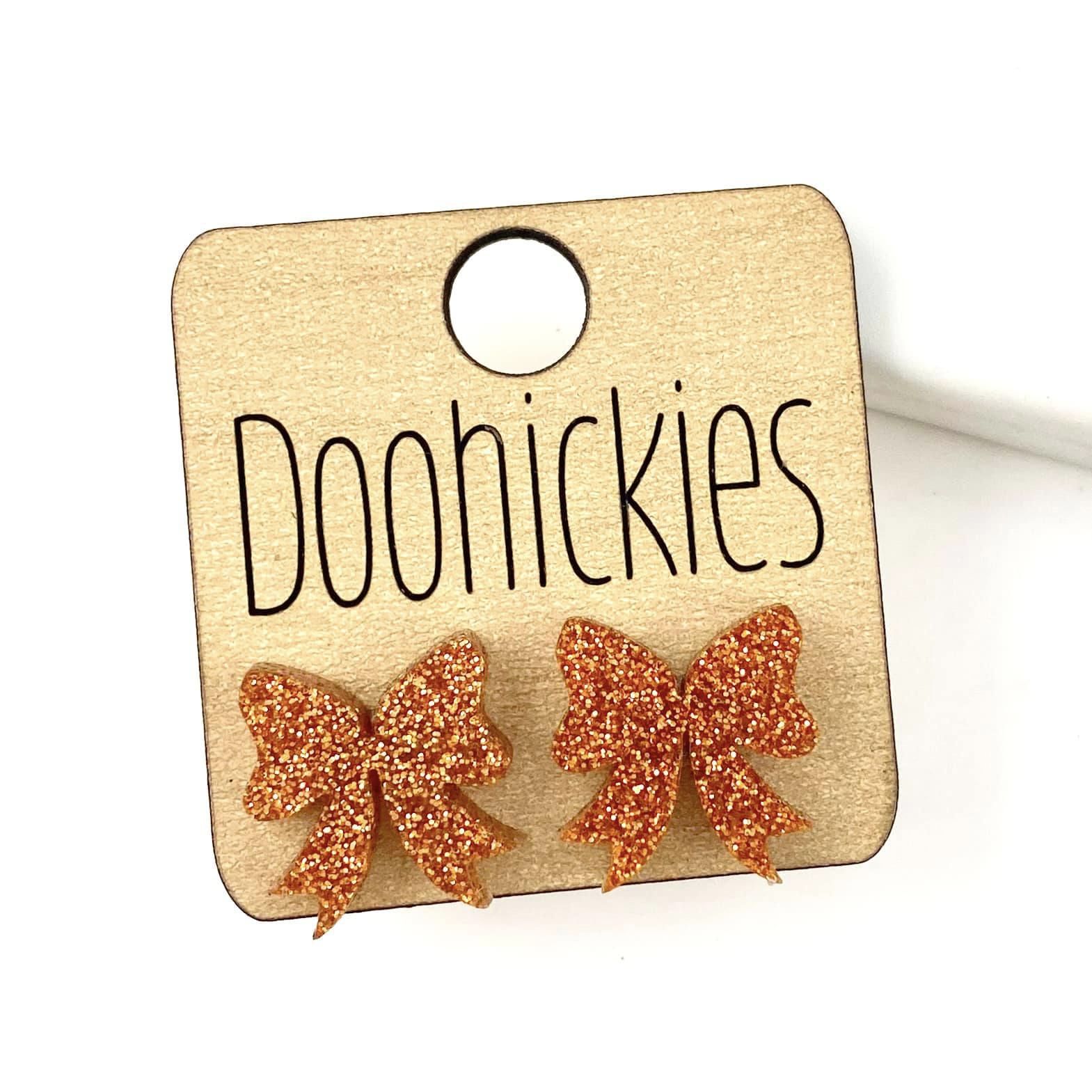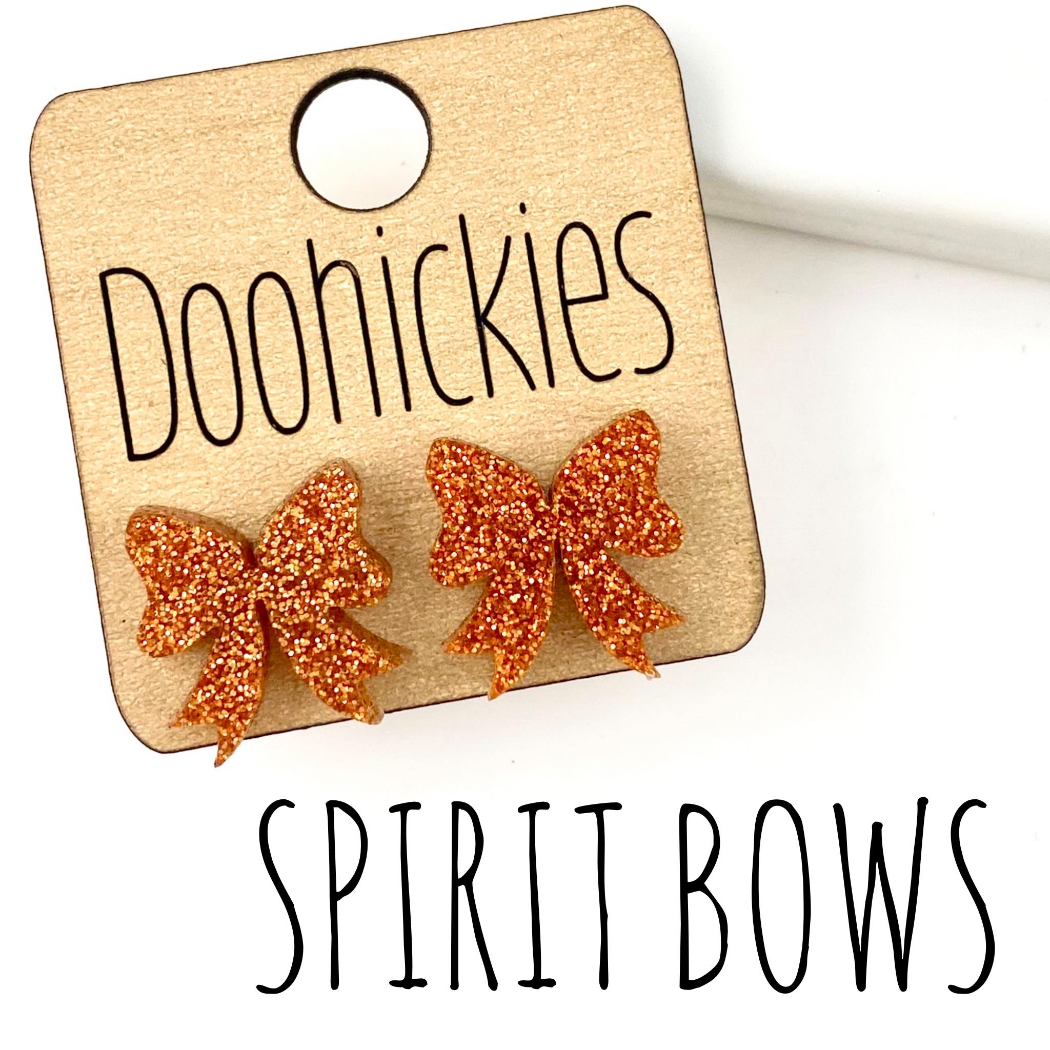 Show off your school spirit with these 15mm glitter spirit bow studs. These spirit earrings come in custom glitter colors to match your unique style. You'll be the MVP of the season!