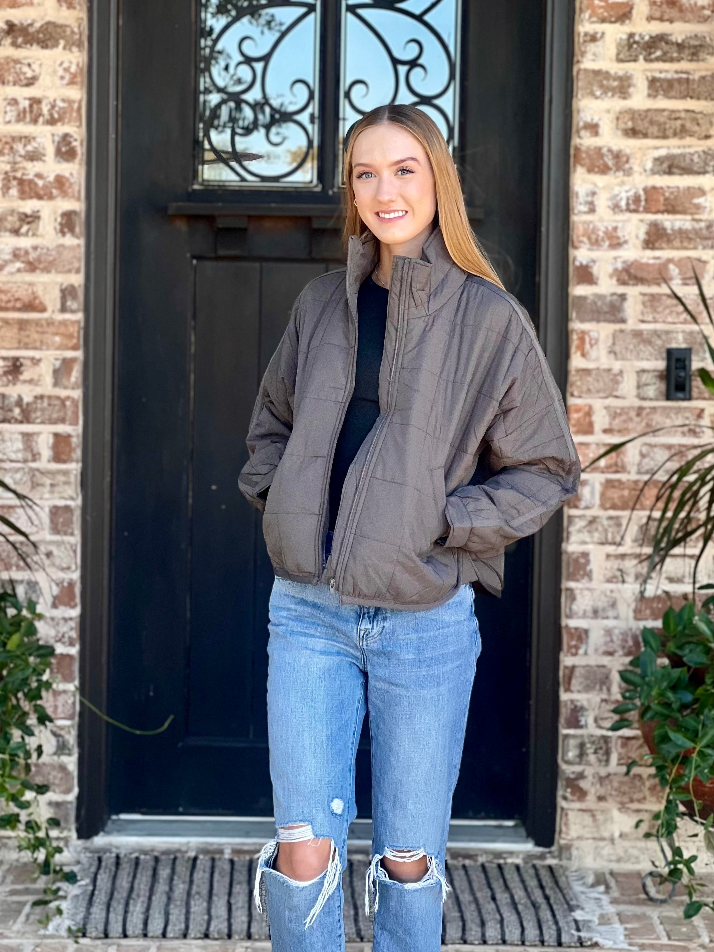 Stay warm and stylish in our Khaki Quilted Square Zip Puffer Jacket! Featuring a unique quilted design and a convenient square zip closure, this jacket is the perfect choice for colder days. Stay cozy and look effortlessly cool.