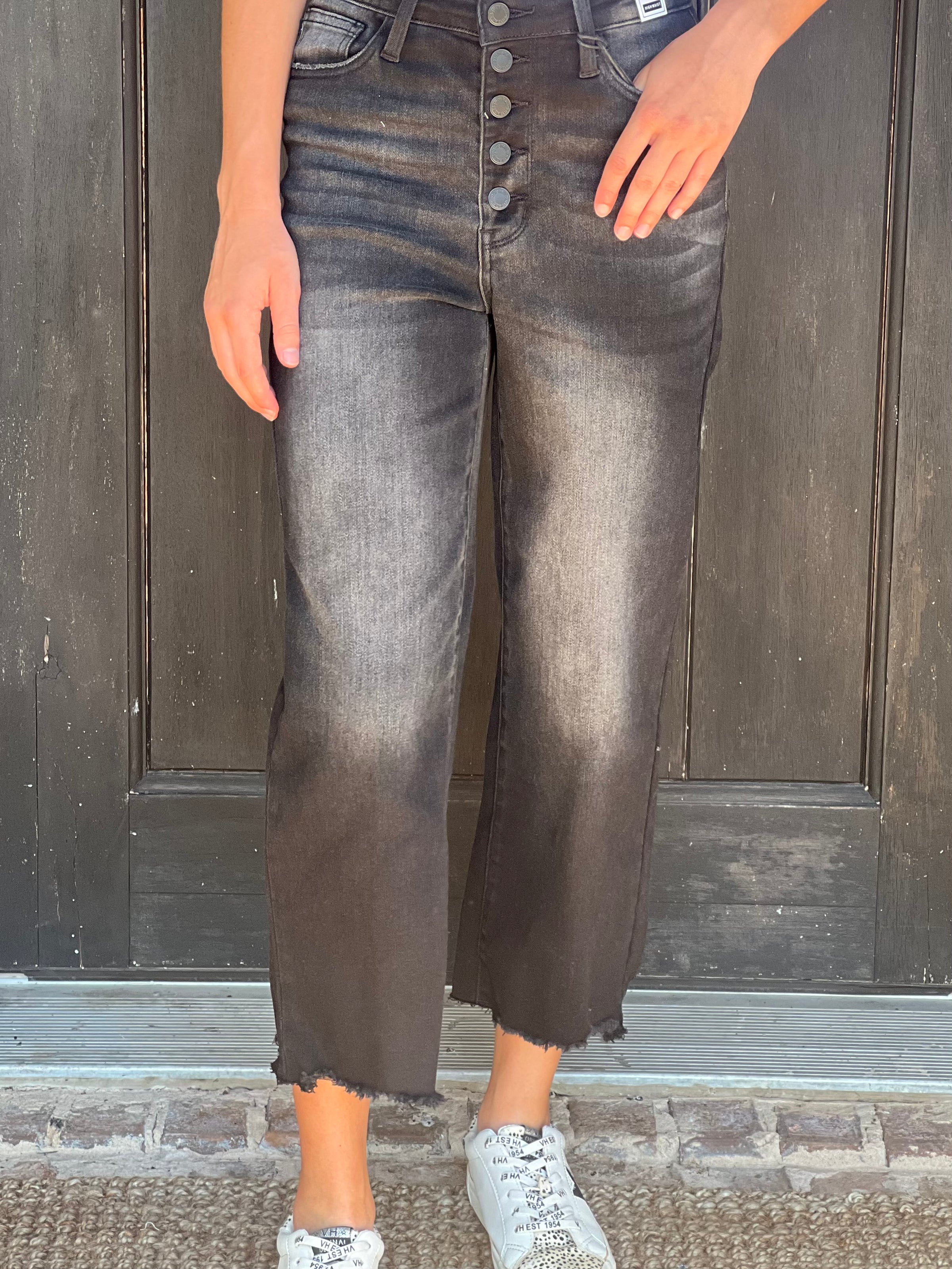 Judy Blue Black High Rise Raw Hem Wide Leg Crop.