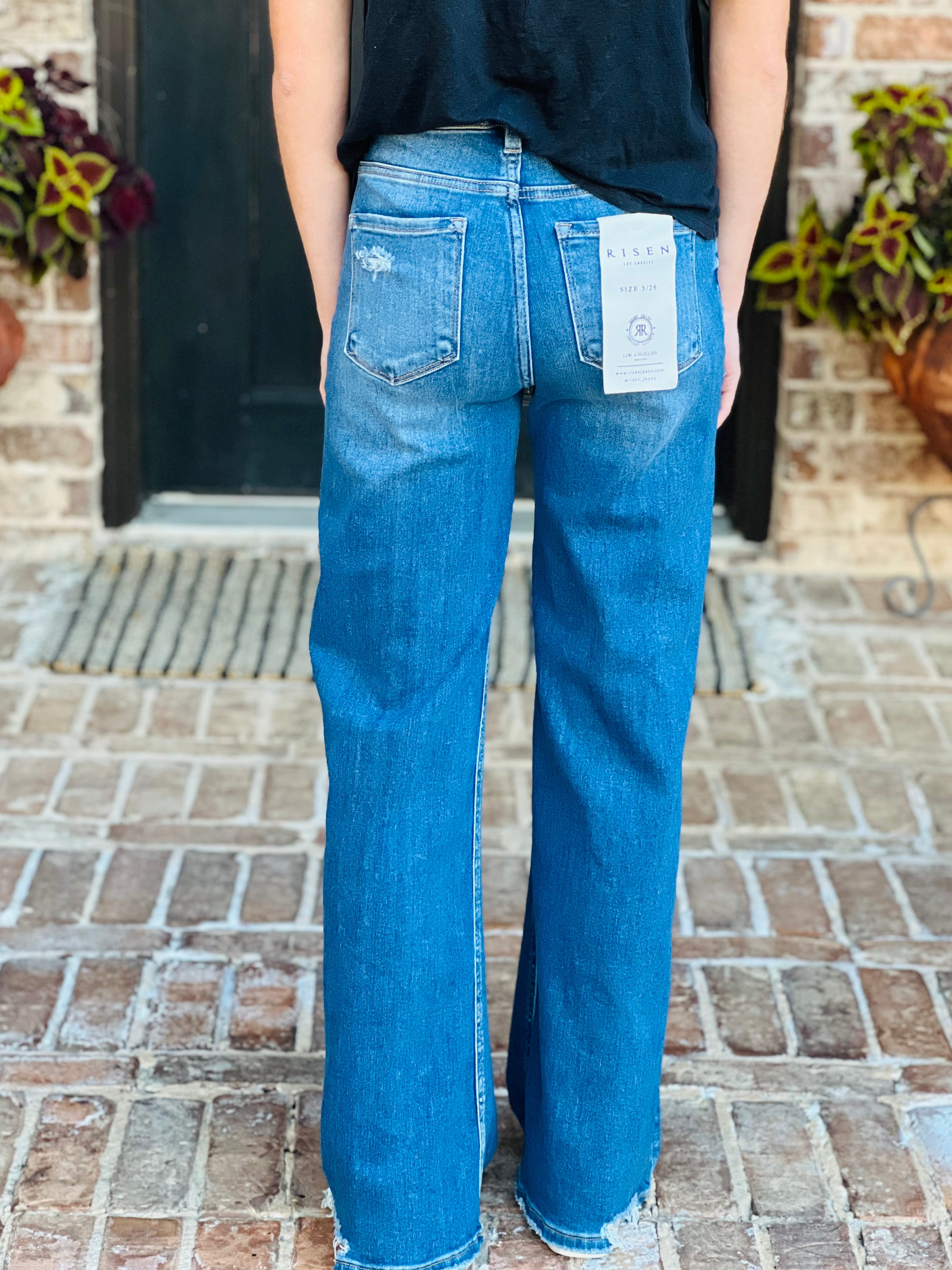 Risen | Ellie Hi Rise Wide Leg Distressed Knee Jeans