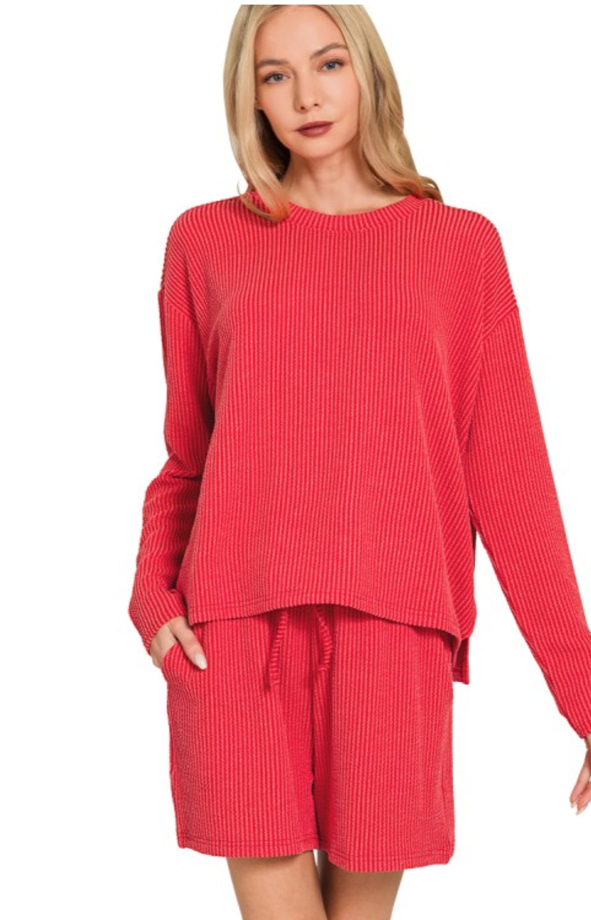 Ruby Ribbed Long Sleeve Tee & Short Set *Pink/Black Friday Deal**