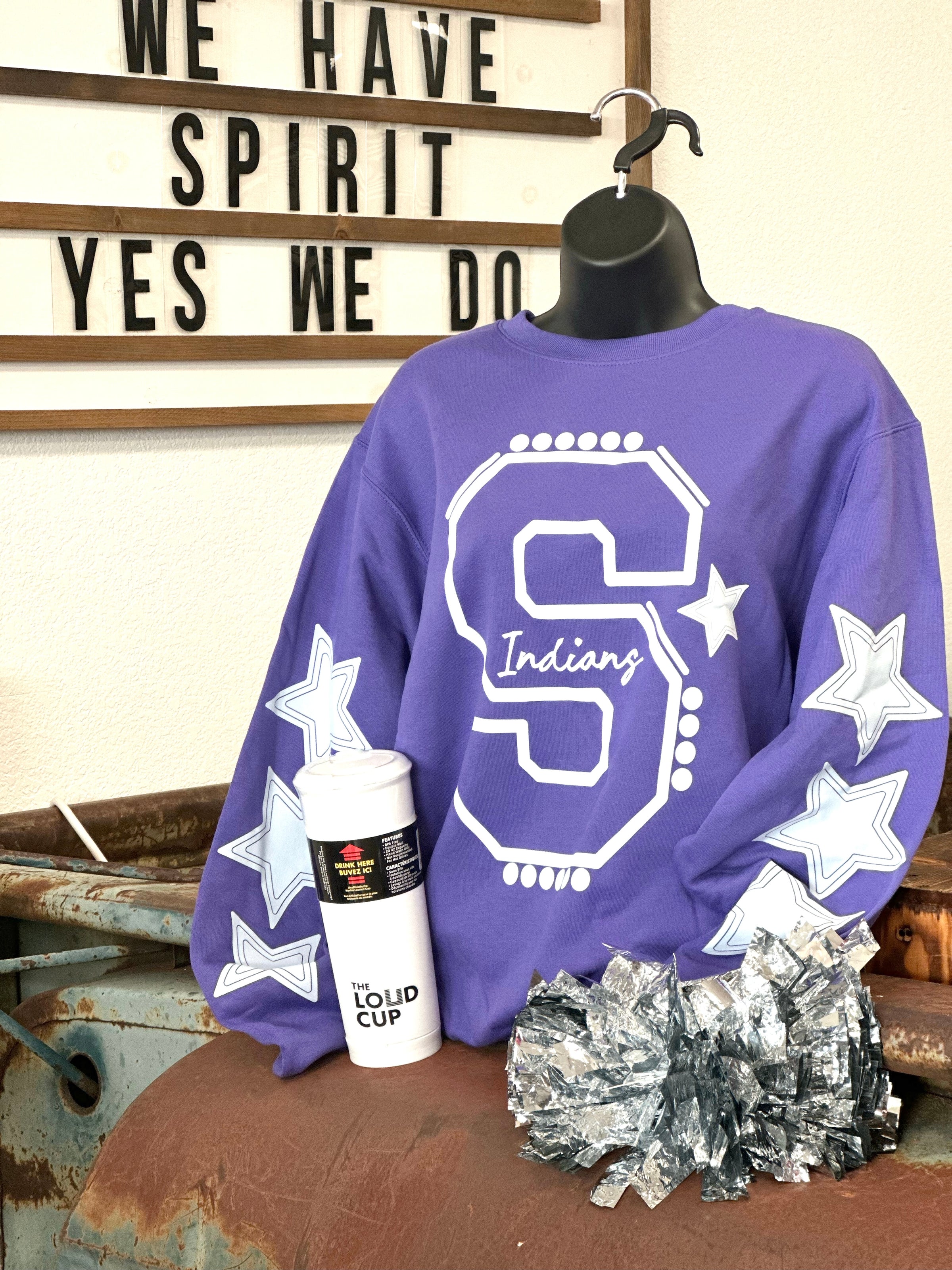 REORDER | S Indians Oversized Varsity Letter Mascot Star Sweatshirt